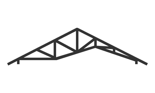 The Dual Pitch Truss has a different angle or slope on each side of the truss apex. This type of truss is very commonly used, and can conform to the design of many homes.